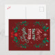 Um Cartão-postal de Natais vintages Elegantes e Modernos apresenta um fundo de neve, flocos de neve, sinos de trenó, fitas, ornamentação florescente e tema de glândula botânica confundida para representar o melhor dos feriados. É inspirado pelas canções de Natal do passado natalício da letra "Jingle All the Way" e é também uma forma excelente de expressar o Holiday Cheer por aqueles que você gosta. Criado com uma letra e ilustração desenhadas para aqueles que adoram Estilos Únicos e Novidade! Desenhado por Katrina Sutton.