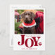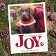 Espalhe ALEGRIA nesta temporada de festas com este cartão de Natal moderno e elegante de foto de animal de estimação perfeito para amantes de cães e gatos! Este cartão de Natal de animal de estimação apresenta sua foto favorita com a palavra ALEGRIA em um estilo de tipografia retrô moderno divertido e uma impressão de pata realista. Adicione sua foto e sua mensagem pessoal a este elegante e divertido design de foto de animal de estimação de Natal e faça dele um cartão de Natal original único. DICA DE FOTO: Pré-corte sua foto ANTES de fazer o upload e/ou use a ferramenta CORTAR na seção PERSONALIZAR para ajustar a colocação dentro da área do modelo. Para obter ajuda com o design ou personalização ou para transferir o design para outro produto, entre em contato com o designer por meio do botão de bate-papo. DIREITOS AUTORAIS © 2022 Judy Burrows, Black