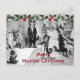 Sombras de cinza espinhadas por uma borda superior de Holly vermelha e verde. Trabalho de arte bonito mostrando um gatinho dando um recital de violino com outro gato tocando piano e outros olhando. Saudação de Natal personalizável abaixo