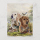 Cartão Postal De Festividades Labrador Retrievers com Faisão, Arte