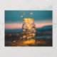 Lâmpadas de fada Jar, Natal, Obrigado, Cartão postal de férias de verão - Um jarro de vidro com luzes de fada brilha e resplandece com o fim do dia ao fundo. Um Natal de verão ou nota de agradecimento, cartão de aniversário ou qualquer tipo de evento secular seria melhor com este cartão postal. Feliz Natal da Kristin e Steve na sua Loja de Natal KNS!