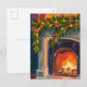 Cartão Postal De Festividades Lareira de Férias | Cartão Pintado com Grinalda de
