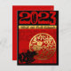 Em um quadrado há um recorte de papel de Coelho preto, colocado no canto esquerdo olhando para uma forma redonda dourada dentro da qual está o segundo coelho com ideograma. Atrás da cena há um fundo vermelho no qual letras decorativas e ornamentadas formam as palavras: ANO DO COELHO. Desenho em cartão postal vertical com grande 2023 vermelho em fundo preto. Você pode facilmente alterar o número (fonte, cor, tamanho e posição) clicando no botão personalizar. Cartão de Natal horizontal correspondente, cartão de saudação vertical e horizontal e mais... Perfeito para o Ano Novo Chinês do Coelho 2023 ou aniversário (pessoas nascidas no Ano do Coelho).