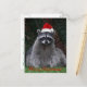 Cartão Postal De Festividades Lindo Guaxinim Vestindo Chapéu Vermelho de Papai N