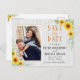 Cartão Postal De Festividades Madeiras brancas Girassol Salvar a data Foto