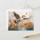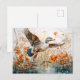 Cartão Postal De Festividades Mallard voando sobre a lagoa com flores