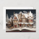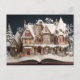 Envie cartões de natal mágicos com este cartão postal de Natal do livro de histórias. Uma casa festiva brilhante, árvores de neve, e uma criança alegre brincando com um cachorro criam uma cena de inverno emocionante. Perfeito por compartilhar desejos de Natal com familiares e amigos.