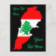 Cartão Postal De Festividades Mapa do Líbano com Bandeira