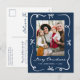 Compartilhe a alegria de Natal com este Cartão-postal de Natal de Marinho de Arcos Desenhados à Mão Branca. Sua foto é enquadrada em fundo profundo, acentuada por uma fita branca desenhada à mão e um design de arco. Abaixo da foto, "Feliz Natal" aparece em um roteiro caprichoso com seu nome de família e ano abaixo. O verso oferece espaço para seu endereço de devolução e mensagem de feriado, fazer este um cartão postal de Natal eterno e elegante.
