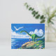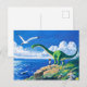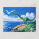 Cartão Postal De Festividades Menino anime e Brachiosaurus observando o mar