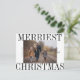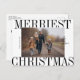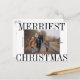 Este cartão postal de Natal Merriest apresenta caligrafia moderna e 4 fotos. Insira suas fotos favoritas, adicione um toque pessoal com sua própria mensagem sincera e personalize-a de acordo com seu gosto. Fotos de prostooleh / Freepik.