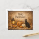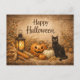 Cartão Postal De Festividades Milho de Gato Preto Rústico Halloween