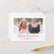Este cartão postal de Natal com a foto de salva de data do Feliz Natal minimal vermelho faz a saudação de feriado simples perfeita para um casal noivo. O design apresenta uma tipografia clássica vermelha e branca combinada com uma fonte de script rústica, mas elegante, com estilo de letra à mão.