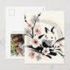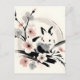 Cartão Postal De Festividades Minimalist Zen Ink Bunny Cherry Blossoms