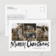 O cartão postal Modern Lettering Cinco Fotos Feliz Natal Feriado apresenta quatro fotos na frente e espaço para sua mensagem mais longa no verso.