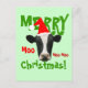 Cartão Postal De Festividades Moo Moo Moo Cartaz de Vaca de Natal Feliz
