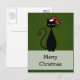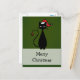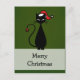 Gato preto bonito vestindo um chapéu de Santas vermelho e branco sobre um fundo verde para o Natal. Personalize e personalize a papelaria nesta loja clicando no botão laranja 'personalizar'. Você pode adicionar algum texto ou mudar a imagem para design de seu próprio presente ou tratar para alguém especial.