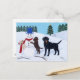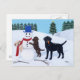 Cartão Postal De Festividades Natal de Labrador com boneco de neve