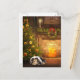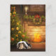 O Collie encontra-se na frente da árvore de Natal e aproxima-se um cartão ardente do feriado do amante do cão do fogo da lareira