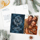 Descubra o charme clássico dos nossos Cartões-postais de Feriado de Natais vintages Elegantes nesta temporada. Estes cartões azuis tradicionais, personalizados com a crista da sua família, uma saudação calorosa de "Feliz Natal", e uma famosa fotografia da família, fazem a ponte entre a arte festiva clássica e o sentimento único. Eles até têm espaço para uma mensagem pessoal sobre o seu ano.