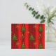 Cartão Postal De Festividades Natal Dourado e Árvores de Natal Vermelhas