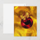 Um cartão postal de Natal dourado brilhante e colorido com um enfeite vermelho brilhante e vibrante na frente. A decoração de Natal também tem um laço dourado e pequenos ramos de folhas vermelhas. Este cartão de Natal dourado luxuoso e muito bonito certamente causará uma impressão muito festiva em quem o receber.