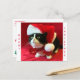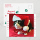 Este cartão-postal de Natal do adorável gato Meowy Christmas apresenta um gatinho de smoking usando um chapéu de Papai Noel sentado em um fundo de veludo vermelho. As palavras "MEOWY" aparecem à esquerda e "CHRISTMAS" aparecem à direita. No verso do cartão-postal você pode personalizar seu endereço. Um sentimento de gato fofo também aparece no verso do cartão-postal. Você pode até personalizar os nomes de sua família neste lindo cartão-postal. A melhor parte é que algumas patinhas verdes de gato aparecem ao longo do verso, então talvez a gatinha tenha colocado seu selo neste lindo cartão. Este é um ótimo cartão de Natal para enviar aos amadores de gatos. Copyright peachesthetuxedocat
