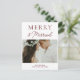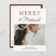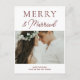Cartão-postal de Natal Simples com Foto de Feriado de Natal Moderno, com feliz e Script Vermelho Casado. Envie cartões de natal personalizáveis e personalizados a amigos, colegas e familiares em cartões postais simples, chicos, elegantes e modernos, ao estilo minimalista e festivo! Abaixo, a caligrafia apresenta sua mensagem de saudação personalizada na tipografia moderna. Todos os textos estão pré-organizados para que você personalize fácil e rapidamente com seus próprios detalhes. Feliz Feriados!