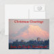 Cartão postal de Natal que apresenta uma imagem fotográfica de um brilho rosa alpenglow no Monte Rainier enquanto ele observa a cidade do Pacífico Noroeste de Tacoma, Washington. Perfeito para quem vive no Pacífico Noroeste! Você pode personalizar seu cartão postal para adicionar texto no verso do cartão, como nome da empresa ou outro texto desejado. Escolha entre estilo fosco ou brilhante.