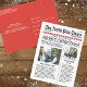Extra leu tudo sobre isso. O North Pole Times traz as últimas e melhores notícias do Polo Norte, Saudações a todos com esta forma amável e divertida de enviar as saudações Feliz Natal e Feliz Feriados a vocês e aos vossos. Este design permite que você adicione tanto ao seu cartão de saudação. Você pode adicionar seus eventos especiais favoritos como graduações, novas casas, novos bebês, novos empregos, histórias peculiares de animais de estimação, e muito mais. Este cartão é excelente para qualquer um que adora enviar cartões de saudação perspicazes. Há tantas coisas para escrever e que melhor maneira de enviar sua saudação com este cartão de saudação divertido e impresso em jornal. Esta design apresenta duas fotos engraçadas e engraçadas de Natal, uma bela tipografia de natal, Papais noeis do polo norte quentes, duas imagens bonitinhas, divertida newsletter humorística da família, newsletter brag vermelho, canas listradas, impressão de jornal legal, cartões de saudação de fotos de feriado, cartão de natal de cartão de pagamento