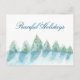 Cartão-postal de Natal com Script Watercolor da Floresta Inverna Pacífica. Desenho de aquarelas das árvores no inverno, floresta de inverno com neve em cores azul e verde. O design é pacífico e calmo com texto na frente e dentro, num roteiro elegante. Personalize o texto.