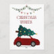 Feliz Natal de Natal Deseja o Cartão HolidayPost com árvore de natal, carro vermelho e decoração de natal