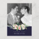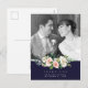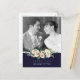Um maravilhoso cartão-postal de fotos de casamento com sotaque de marinho e flores para borrar para seus convidados. Personalize o texto na frente e atrás e troque a foto. Muitos outros itens do meu compro com este design.