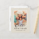 Envie alegria natalina para sua família e amigos. O cartão postal fotográfico do Ano Novo apresenta a escrita Olá Ano Novo sobre um fundo com textura de tela de falso burelê. Itens combinando também estão disponíveis.