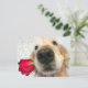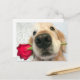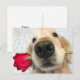 Envie saudações de Dia de os namorados ao seu docinho com este cartão-postal fofo! Design apresenta uma fotografia de um cão apanhador de ouros que está a segurar uma rosa vermelha de solteiro na boca. O texto personalizável diz, "Feliz dia de os namorados!"