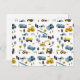 Cartão Postal De Festividades Padrão de Tema de Construção Azul