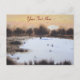 Este cartão postal de cena de neve atmosférica tem uma imagem de uma pequena paisagem coberta de neve. No primeiro plano da imagem cênica estão tufos de gramíneas e arbustos cobertos de neve. Ao fundo, os ramos nus de inverno das árvores distantes são derramados em neve sazonal e uma camada espessa de cobrir de neve macios e recém-caídos nas planícies de pastagem. Esta pintura a aquarela é evocativa do dia frio de dezembro e parece muito especial neste cartão postal único de Natal. O título da pintura original é "Neve nas planícies." Este é um postal personalizável, você pode personalizá-lo com seu próprio texto.