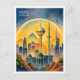Cartão Postal De Festividades Paisagem urbana de Baku Azerbaijão Aquarela