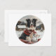 Cartão Postal De Festividades Pano Collie Dog Snowman na fronteira de Natal