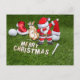 Cartão Postal De Festividades Papai Noel de Natal e bola de golfe