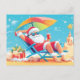 Cartão Postal De Festividades Papai Noel Relaxando em uma Praia Tropical Sunbed