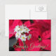Cartão postal de Natal que apresenta uma imagem fotográfica de Poinsettias vermelhas brilhantes e Papeis brancos bonitos. Um design festivo e floral para as festas de fim de ano! Você pode personalizar seu cartão postal para adicionar texto no verso do cartão, como o nome da empresa ou qualquer outro texto desejado. Selecione entre o estilo fosco ou brilhante.
