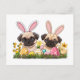 Cartão Postal De Festividades Páscoa Cachorros Coelhinhos