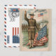 Cartão Postal De Festividades Patriotic Soldier Holding US Flag Postcard