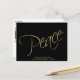 Este cartão postal de feriado apresenta um design simples, mas elegante. O design minimalista inclui a palavra "Paz" escrita em um guião falho dourado sobre fundo preto. As costas têm espaço para carregar uma foto e escrever uma mensagem curta. É uma maneira bonita e moderna de enviar saudações da estação.