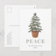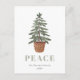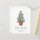 Este simples cartão postal de feriado apresenta uma ilustração aquosa de uma árvore verde-everdeada numa cesta. A palavra "PEACE" aparece em letras grandes, sage verdes serif que se coordenam com a arte. Adicione o nome da sua família e o ano em itálico de cinzas carvões, e o seu endereço de retorno no verso