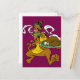 Celebrar os feriados com este charmoso cartão postal com Scooby-Doo vestido como peregrino ao lado de um peru festivo. Este design lúdico e colorido captura o humor e a nostalgia do desenho clássico, perfeito para compartilhar cartões de natal alegres com amigos e familiares.