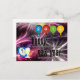 Este design de cartão-postal do Feliz ano novo apresenta fogos de artifício vibrantes e coloridos, confetti, festas, relógio, vidro de champanhe e balões. Antes que o relógio atinja meia-noite na Eve dos Anos novos, envie seus melhores desejos para sua família e amigos e adicione seu toque pessoal com este cartão postal de Feliz ano novo personalizado.