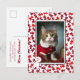 O tema do Red Gingerbird Man enquadra sua foto de gato neste cartão de Natal fofo personalizado com seu endereço e saudação.