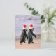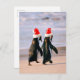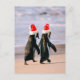 Cartão Postal De Festividades Pinguins com Chapéus de Papai Noel na Praia